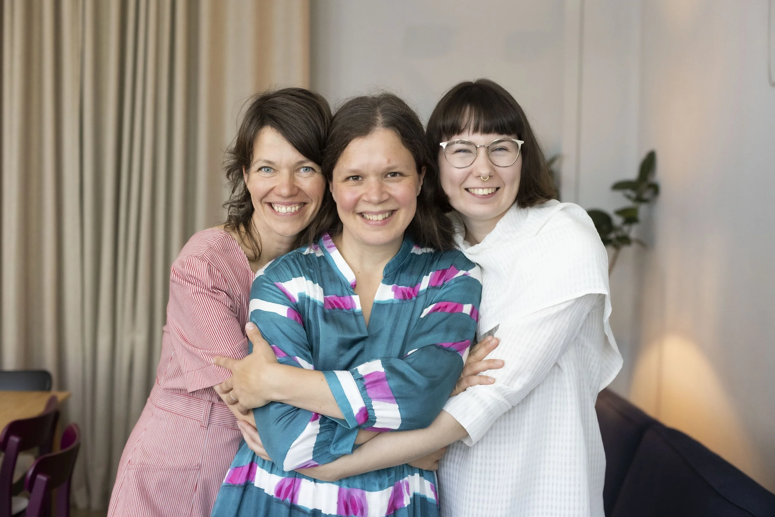 We have been working on TAUKO Magazine since the first issue: Mila is our editor, Kaisa is our head of design, and Hanna is our community builder. Photo by our photographer: Laura Oja