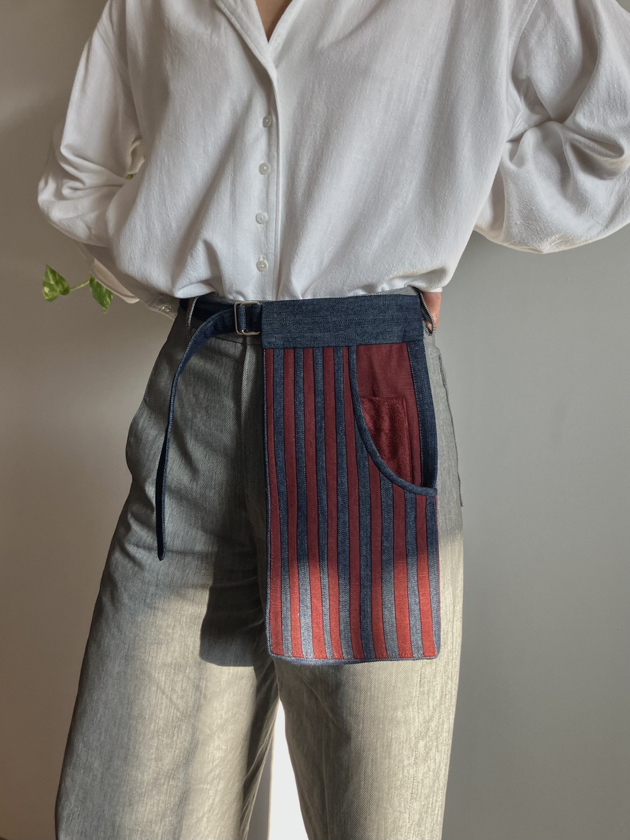Liz Haywood is a former industry pattern maker who enjoys home sewing. For her, pockets are essential feature for any garment and an important part of living on a rural property. She never leaves the house without a pocket knife, a handkerchief, and a hair tie - and she never wears clothes without pockets! The ROO hanging pocket was designed to provide pockets for clothes that don’t have them, or replace the pathetically small pockets found on others. It was inspired by historical tie-on pockets that women wore under their clothes. Liz’s modern version is a gusseted, cargo-style pocket designed to be worn on the outside.